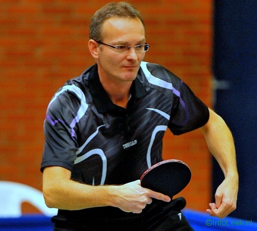 Het was Lex Bruijn die moeizaam het eerste punt binnensleepte door te winnen in vijf games van E. Cramer (8-11, 8-11, 11-9, 11-6, 7-11). Het dubbel ging dik verloren met als gevolg een 3-1 achterstand. Jan had het vervolgens zeer zwaar tegen J. Zeeders: de eerste 2 games gingen met 11-8 verloren. Hierna wist Jan knap het tij te keren, hij werkte 2 matchpoints weg en wist uiteindelijk de overige 3 games naar zich toe te trekken (6-11, 10-12, 10-12). Lex verloor hierna kansloos in drieën van A. Baarda en John verloor van Cramer.