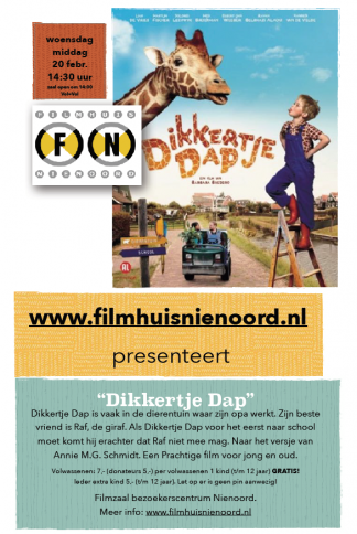 Niet zomaar een kinderfilm maar een film geschikt voor jong en oud, met kwaliteiten die een arthousefilm ook met zich meebrengt: een kleinere film met een artistiek karakter. Films die met minder geld zijn gemaakt en vaak daardoor ook bij een minder groot publiek bekend zijn, maar zeker niet minder mooi zijn. Voor de voorjaarsvakantie heeft Filmhuis Nienoord de film: Dikkertje Dap gekozen, gebaseerd op het alom bekende versje van Annie MG Schmidt, geregisseerd door Barbara Bredero.