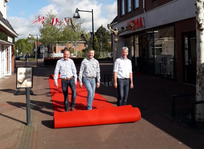 LEEK – Een rode loper in het dorp speciaal voor alle moeders! Deze is zaterdagmorgen door enkele winkeliers uitgerold in de Tolberterstraat.