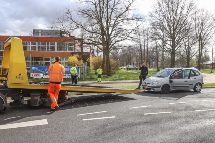 LEEK – Donderdagmiddag is een man met zijn auto op de rotonde beland ter hoogte van de Lindensteinlaan/Auwemalaan in Leek.