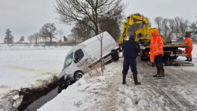 Boerakker – Een paard is zondagmiddag met zijn voorbenen door de voordeur van een trailer gezakt.