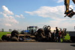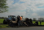 De tank die vol zat met mest, kwam naast de weg terecht. De berm was door de regenval van de afgelopen dagen zacht geworden. De tank brak achter de trekker weg en kwam vervolgens in de sloot terecht. De inhoud van de tank is overgepompt in een andere tank. Onderdelen zijn vervolgens van de gekantelde tank afgehaald, waarna Poort de tank kon bergen.