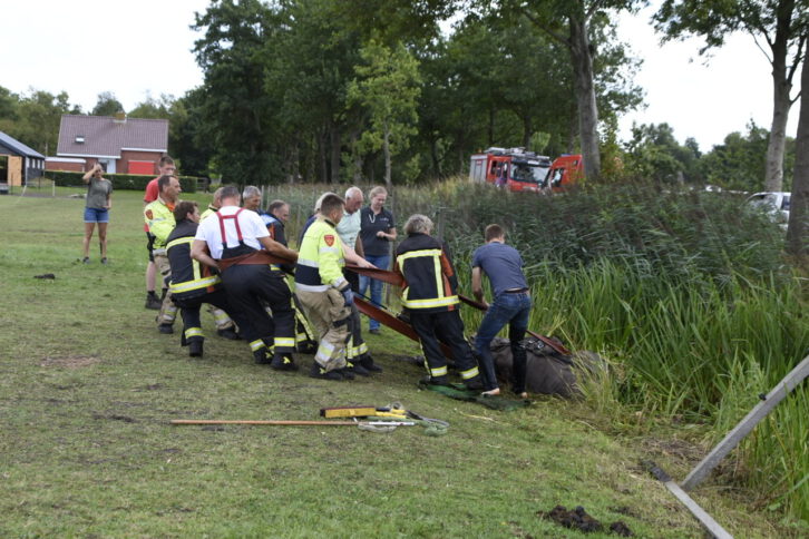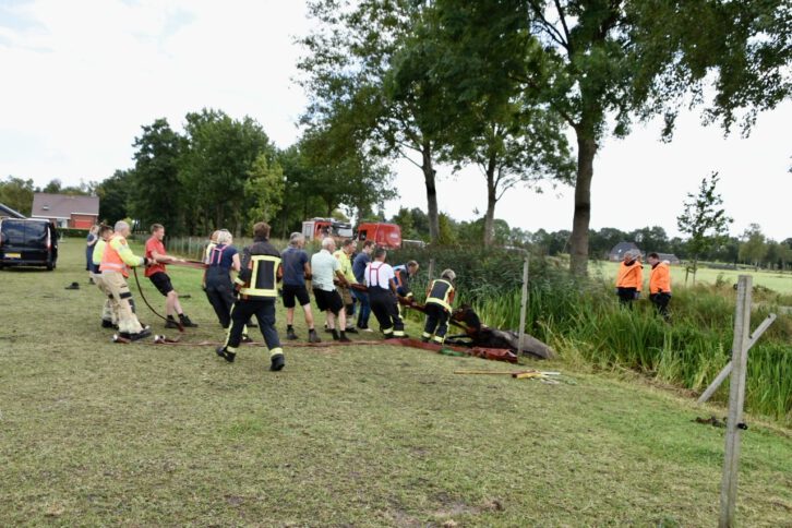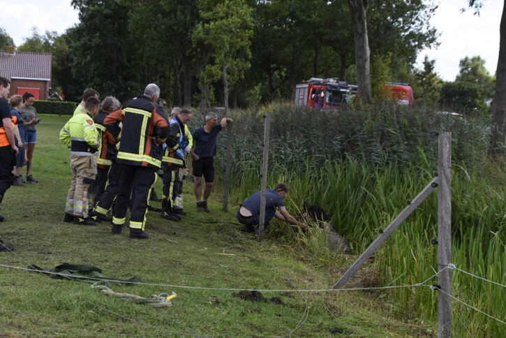 Brandweer Marum is ter plaatse gekomen en wisten met behulp van brandslangen het dier op het droge te krijgen. Een dierenarts is ter plaatse gekomen om het dier te controleren op eventuele verwondingen.