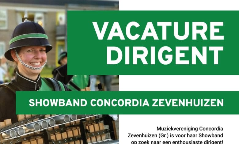 Zevenhuizen – Muziekvereniging Concordia in Zevenhuizen is voor haar Showband op zoek naar een nieuwe enthousiaste dirigent. Showband Concordia is een ‘drumfanfare’ bestaande uit een blazersen een drumsectie van in totaal circa 20 personen.