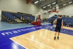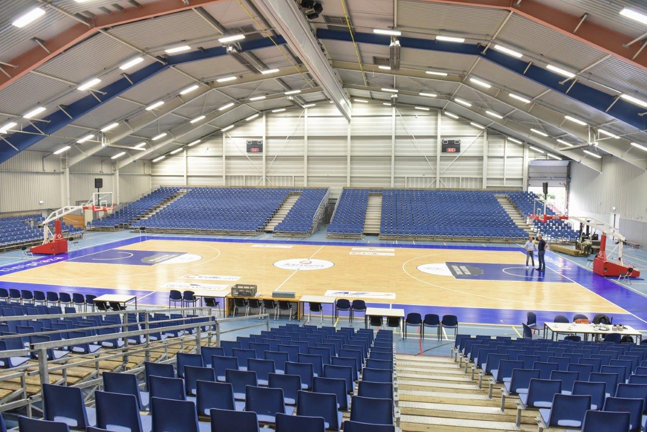 Maandag is begonnen met het neerleggen van de speelvloer, zijn er extra anker punten aangebracht zodat de baskets volgens norm verankerd konden worden en is gestart met het opbouwen van de tribunes met in totaal plek voor 2800 toeschouwers.