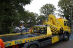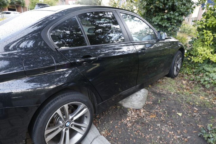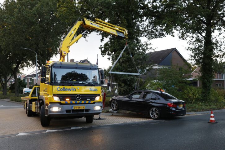 Door de klap kwam de BMW bovenop een steen terecht. Hierdoor kon de auto geen kant op. Een bergingsbedrijf heeft de auto van de steen getakeld. De auto had enige schade maar afsleep bleek niet nodig. De bestuurster is door de politie meegenomen naar het bureau. Het verkeer op de Auwemalaan en De Boskamp had enig hinder vanwege het ongeval.