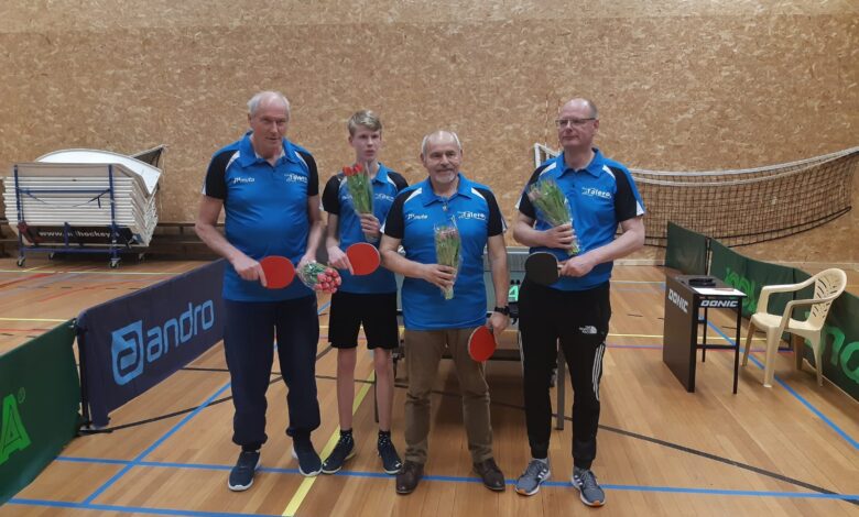 Op de onderstaande foto staat het gehuldigde kampioensteam met Kees, Mathijs, Marcel en Victor. Teamgenoot Stella ontbreekt op de foto. Dit team mag het volgend seizoen een klasse hoger gaan proberen.
