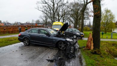 Gewonde na frontale aanrijding tegen boom op de Zevenhuisterweg in Nieuw-Roden