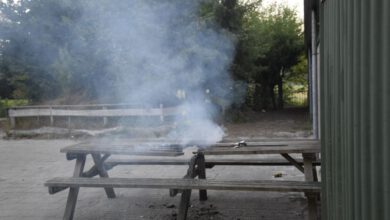 Picknickbank in brand achter basisschool in Leek